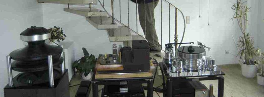 Die Testanlage umgestellt mit zum Test anstehenden Lautsprechern. Laufwerk Transrotor Fat Bob, mit Tonarm Pluto 5a und Tonabnehmer Phonosophie Flair. Phonostufen Ear De Luxe und Phonosophie.
